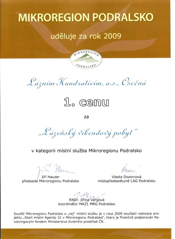 Lázně Kundratice a.s. z Osečné, které získaly 1.cenu za lázeňský