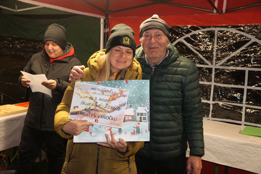 29.11.2025 – Den před první adventní nedělí, v sobotu 29. listopadu 2025, proběhlo na Svatovítském náměstí v Osečné slavnostní rozsvícení vánočního stromu. Akce se těšila velkému zájmu veřejnosti a náměstí zaplnily desítky nadšených návštěvníků. Program zahájilo v 16:00 hodin vystoupení souboru dechových nástrojů Celestýnka společně s dětmi z místní základní školy. Přesně v 16:30 hodin se po společném odpočítávání rozzářil krásně ozdobený vánoční strom a oficiálně tak přivítal adventní čas. O občerstvení se postaral stánek motoristů GRYF Osečná a městský úřad, kde bylo možné zahřát se svařeným vínem či punčem. Nechyběl ani stánek s nealko občerstvením mladých hasičů (Plamínků). Velký zájem vzbudila soutěžní výstava vánoček od místních pekařů-amatérů. Návštěvníci mohli ochutnat všech pět soutěžních vzorků a označit svůj nejoblíbenější. Po celé odpoledne byl k dispozici kočár tažený koňským dvojspřežím pana Jaroslava Diblíčka, který se těšil velkému zájmu malých i velkých návštěvníků. Novinkou letošního roku byl Vánoční fotokoutek – stále plný těch, kteří si chtěli odnést veselou vzpomínku na tento den. U vstupu do kostela opět nechyběl tradiční krásně nasvícený betlém, o jehož přípravu se postarala paní Petra Klížová.
