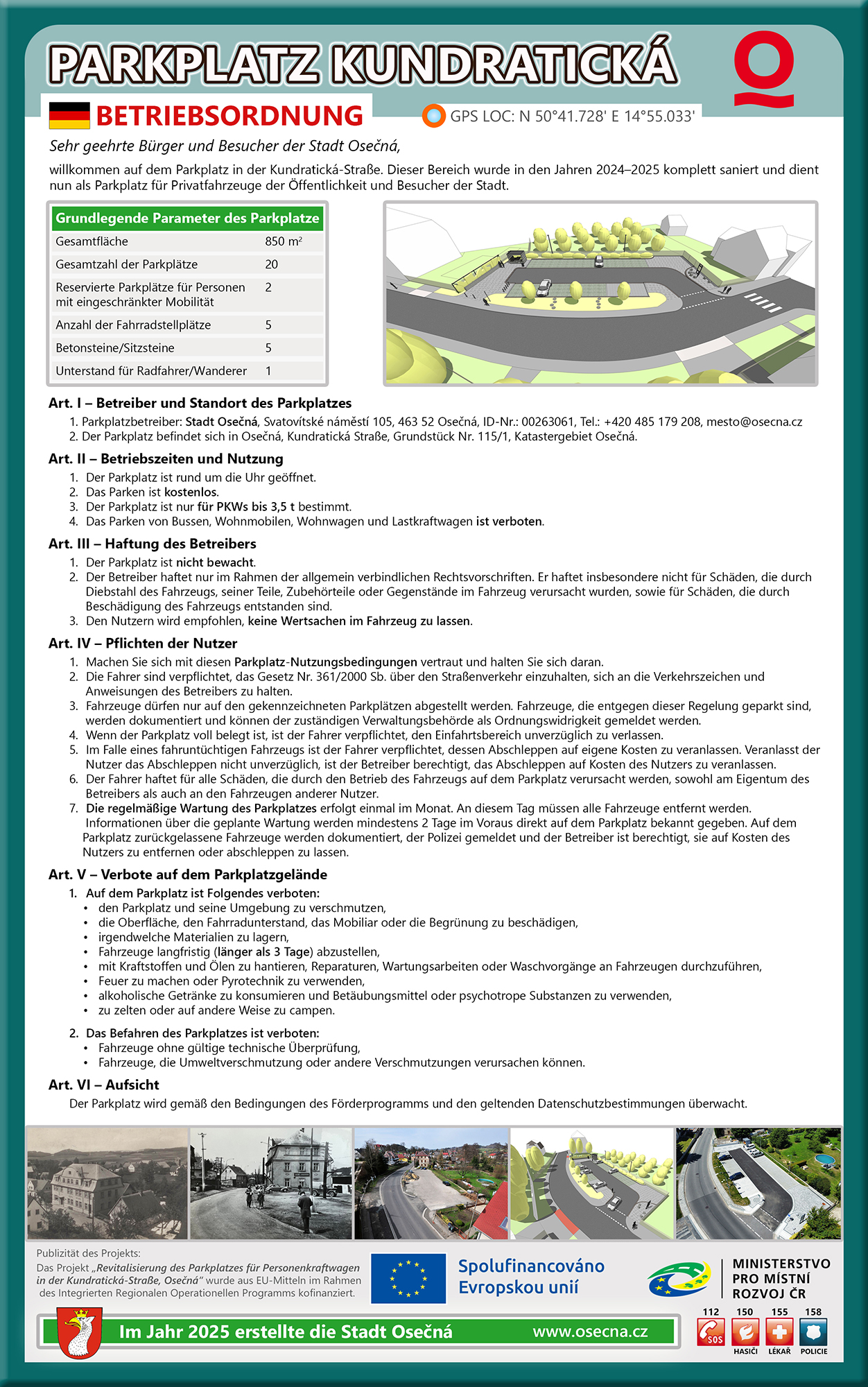 - Název projektu: Revitalizace odstavné plochy pro osobní vozidla v Kundratické ul., Osečná