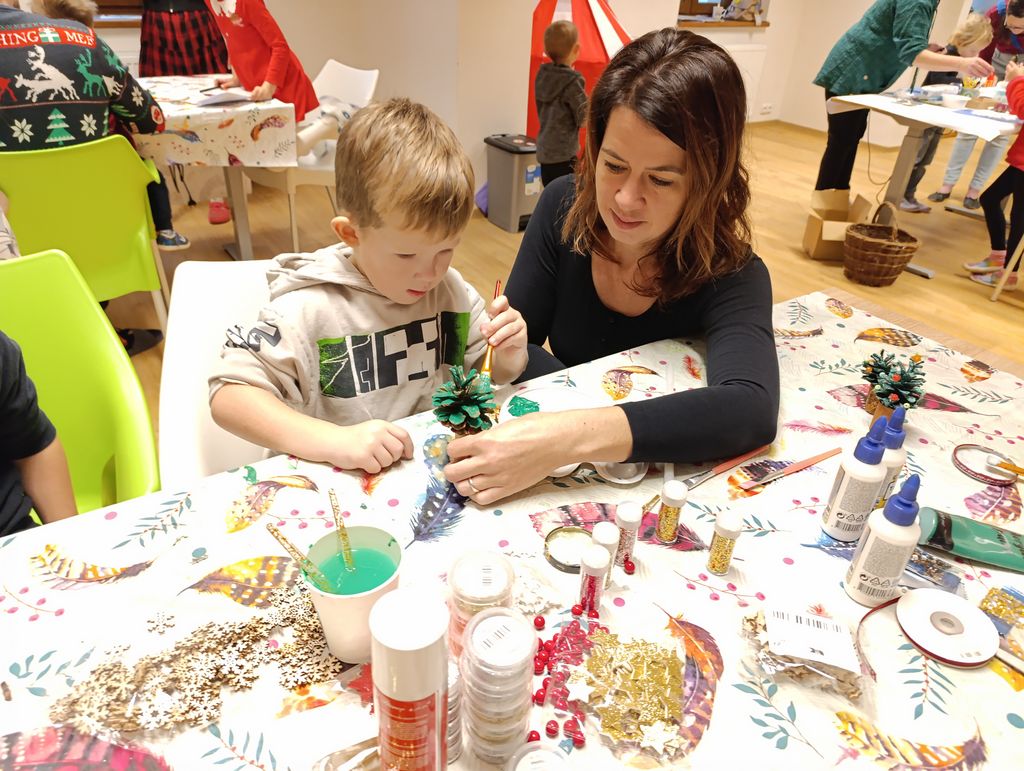 Na jednotlivých stanovištích si malí i velcí mohli vyzkoušet různé kreativní činnosti a domů si odnášeli spoustu vlastnoručně vyrobených vánočních dekorací a drobných radostí, které jim budou připomínat společně strávené chvíle.