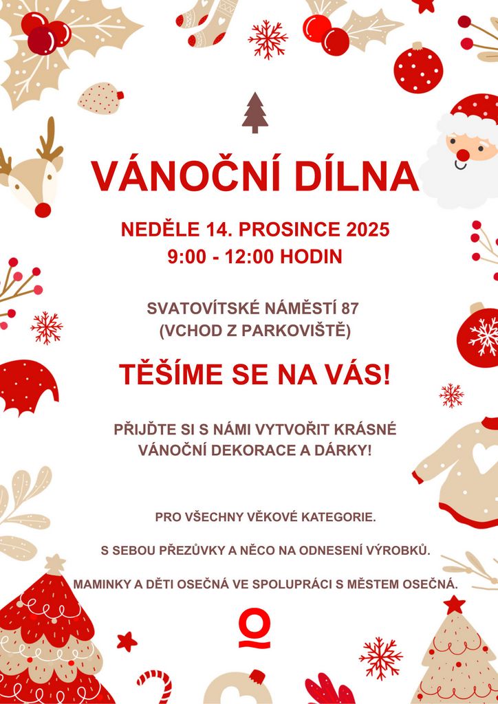 14.12.2025 – V neděli 14. prosince 2025 se uskutečnila Vánoční dílna, která se nesla v duchu společného setkávání, tvoření a sdílení. Během dopoledne akci navštívilo 65 evidovaných účastníků – děti, rodiče i prarodiče, kteří si přišli užít čas spolu a naladit se na blížící se Vánoce.