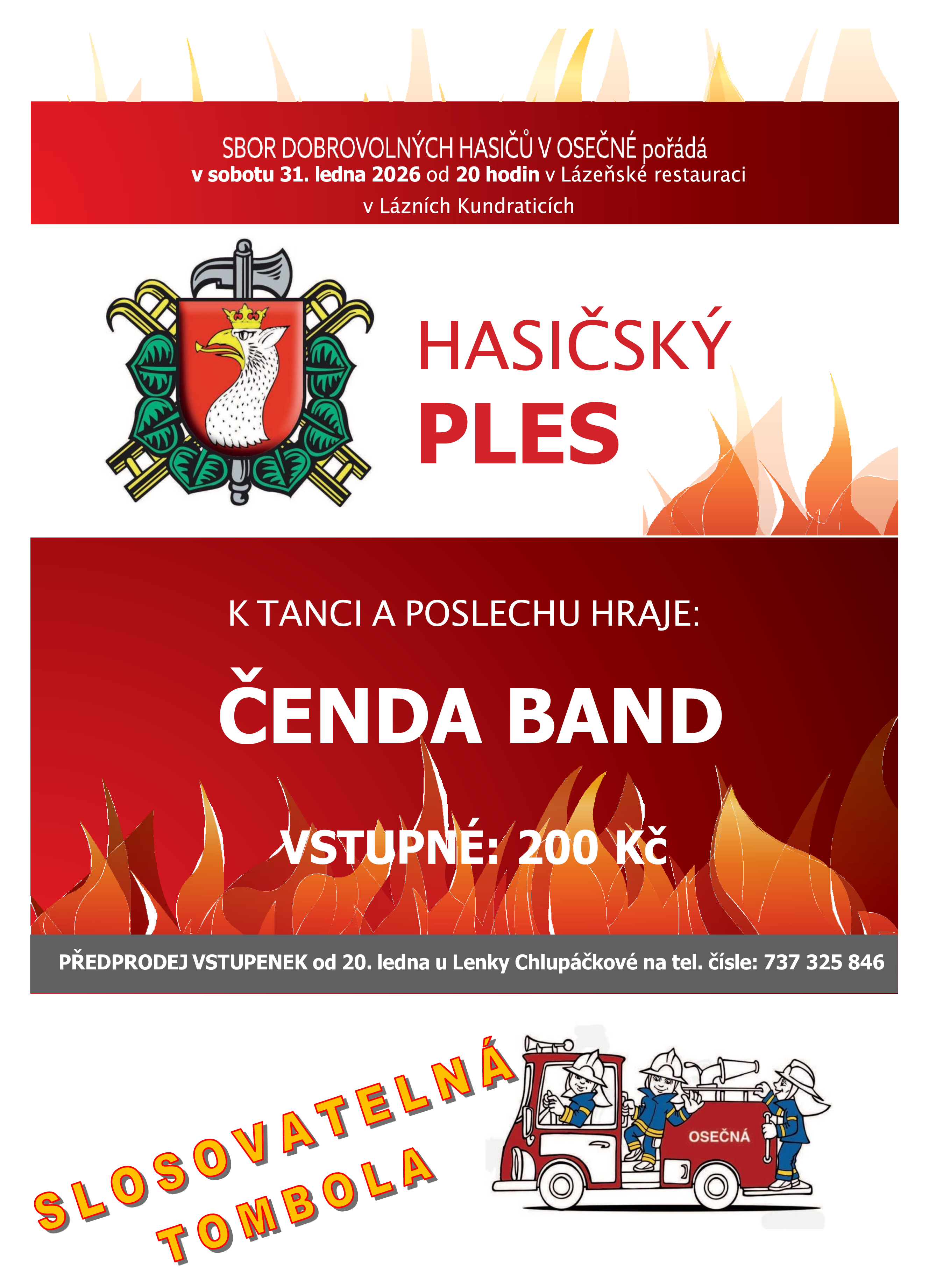 V sobotu 31. ledna 2026 od 20.00 hodin proběhne v restauraci v Lázních Kundraticích tradiční „Hasičský ples“. K tanci a poslechu hraje ČENDA BAND.